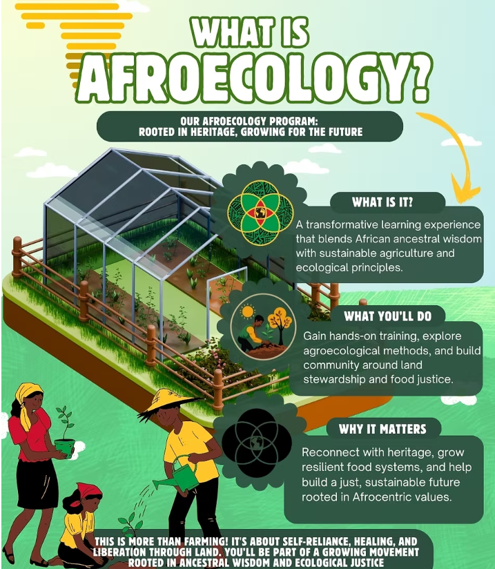 The AfroEcology Program offers a unique and empowering learning experience at the intersection of African ancestral knowledge, ecological principles, and sustainable agriculture. This program is designed for individuals passionate about cultivating healthy food systems, stewarding the land, and building resilient communities rooted in Afrocentric perspectives.