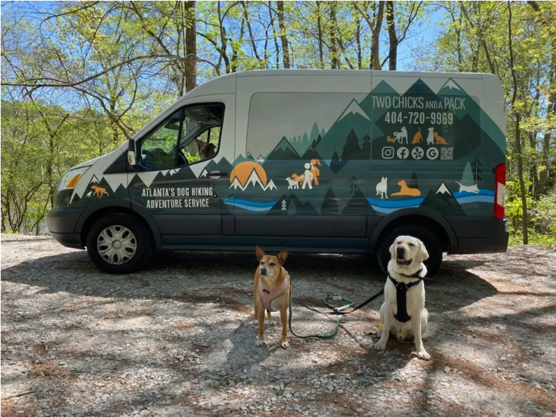 Two Chicks and a Pack is a mobile dog hiking adventure company geared towards working parents of city pups.